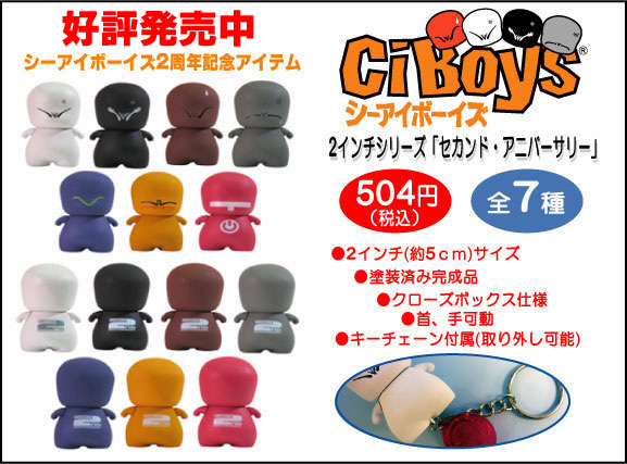 RANGERS (アイティーレンジャーズ)」改め「RED MAGIC」がデザインした新キャラクターです。彼ら自身の手によってフィギュアやTシャツなどのグッズが制作されており、香港だけでなく台湾やシンガポールをはじめアジア各地で好評を得ています。もっとも人気のある2インチ(約5cm)サイズのトレーディングフィギュアは世界ですでに15万個を販売しました。また香港のいくつかの企業が、紅茶やパソコン、CDなどの販促用グッズとしてシーアイボーイズを使用しました。日本国内では2003年8月、東京・大阪で行われた日本最大規模のロックフェス「サマーソニック2003」の公式キャラクターに採用され、会場ではシーアイボーイズミニフィギュア付きのパンフレットや限定品が販売されました。今後も通